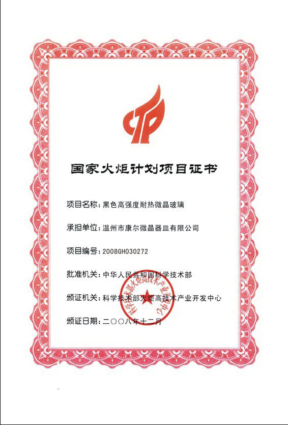 國(guó)家火炬計(jì)劃證書